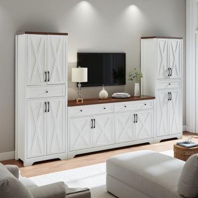 Farmhouse Barn Door TV Stand with Open and Closed Storage