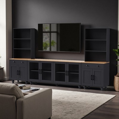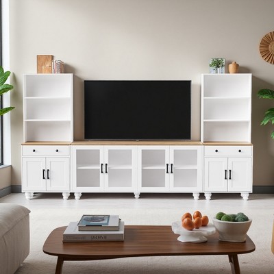 Modern Wood TV Stand with Cabinets and Open Shelves