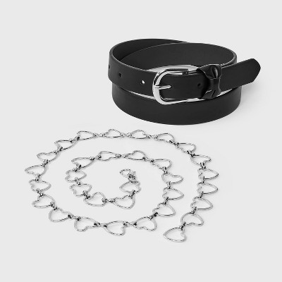 Girls' 2pk Bow and Heart Chain Belt - art class™ Black/Silver