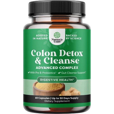Colon Cleanse & Detox Capsules, Lactobacillus Acidophilus for Body Cleanse & Psyllium Husk Capsule for Gut Health Supplement, Nature's Craft, 60ct