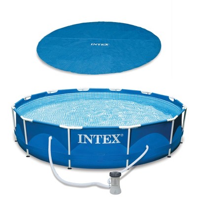 Intex 29022E Swimming Pool Solar Cover Tarp Bundled with Intex 28211EH Metal Frame Above Ground Swimming Pool with Type "A" Filter Cartridge