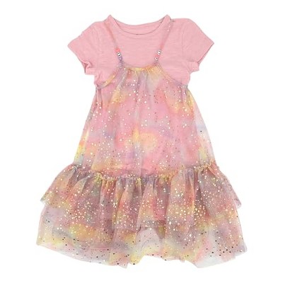 KIDZ BOP Girls Tiered Mesh Dress and Full Length T-Shirt Kids Outfit