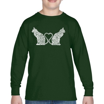 LA Pop Art Cat Tail Hearts - Boy's Word Art Long Sleeve T-Shirt