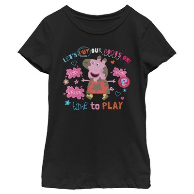 Girl's Peppa Pig Let's Put our Boots on Time to Play T-Shirt