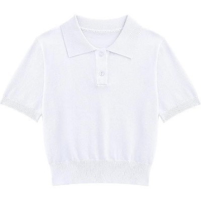Girls Short Sleeve Summer Polo Shirt V Neck Button Down Knit School Crop Tops
