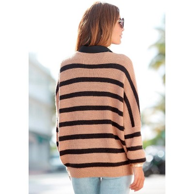 Women's Fuzzy Knit Striped Sweater - LASCANA