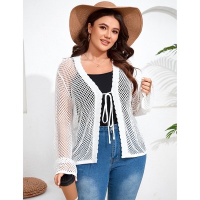 Women's Plus Size Knit Open Front Cardigan Hollow Out Summer Cardigan