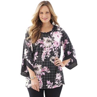 Woman Within Rayon 7-Day Three-Quarter Sleeve Tab-Front Tunic