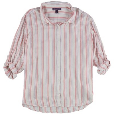 Gloria Vanderbilt Womens Roll Tab Stripes Button Up Shirt