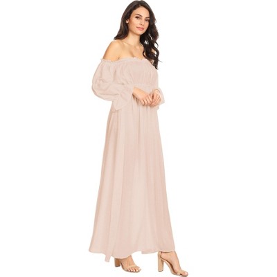 Anna-Kaci Women's Long Puffed Sleeve Off Shoulder Gathered Maxi Fashion Dress