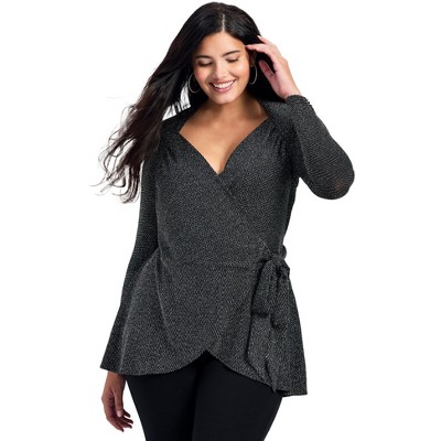 Roaman's Lace-Trim Blouson-Sleeve Top