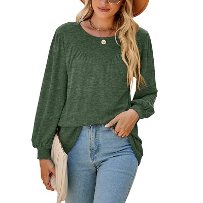 Women's Long Sleeve Blouse Round Neck Loose Fit Casual Top