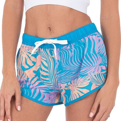 SUZZI Womens 4-Way Stretch Fast Dry Tropical Hawaiian Print Running Shorts