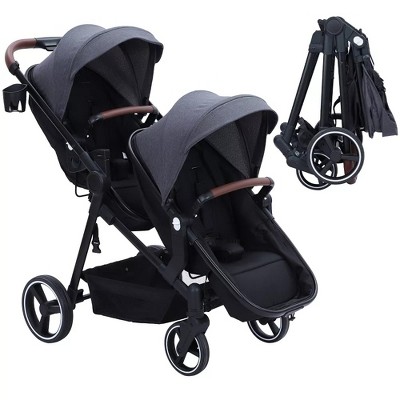 Double Track Tandem Stroller, Foldable Bassinet Pram for Infant and Toddler