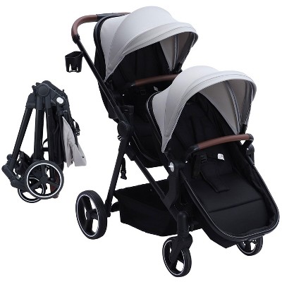 Whizmax Double Stroller Track Tandem Stroller for Infant and Toddler, Foldable Pushchair Bassinet Pram,Large Storage Basket and Canopy,For 0-36 months
