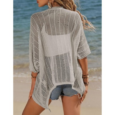 Coolmee Women's Short Sleeve Cardigans Summer Open Front Hollowed Out Shrug Sweaters Knit Sweater Tops Lightweight Cardigans M Silver Grey