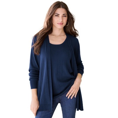 Woman Within Marled Zip-Front Cable Knit Cardigan Sweater