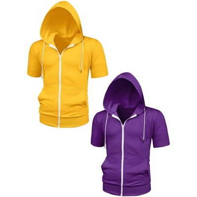 Lars Amadeus Men's Solid Color Zip Up Short Sleeves Sweatshirt with Drawstring Hood 2 Packs