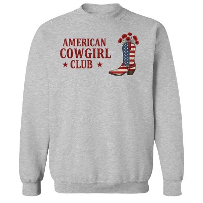 Rerun Island Men's American Cowgirl Club Americana 4Th Of July Long Sleeve Graphic Cotton Pullover Sweatshirt