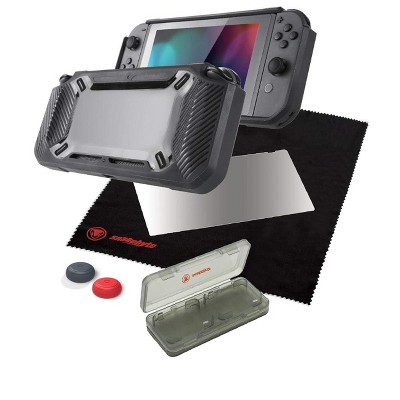 Snakebyte Tough Kit - Accessory Set Including Rubber Hard Case H9 Glass Protector Cleaning Cloth Thumb Grips Game Hard Case for Nintendo Switch
