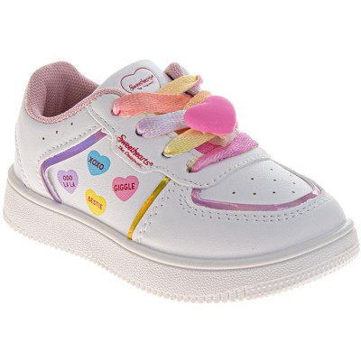 Sweethearts White Girls' Sneakers with Rainbow Laces & Heart Charms (Toddler)