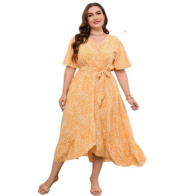 Plus Size dress Women's Plus Size Floral Summer Dress Casual Wrap V Neck A Line Ruffle Belted Dress