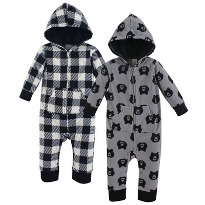 Yoga Sprout Baby Boys Hooded Fleece Jumpsuits 2pk, Bear Baby