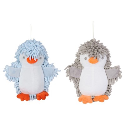 REGALWOVEN 2 Packs Soft Absorbent Chenille Cute Cartoon Elephant Hand Towel with Hanging Loop 7" x 11"