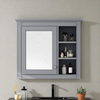 35'' x 27.5'' Medicine Cabinet, Wall Mounted Bathroom Storage Cabinet with Mirror, Modern Wall Cabinet with Concealed & Open Shelves
