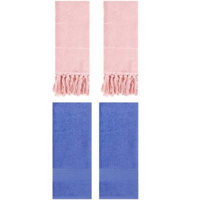 REGALWOVEN 4 Packs Solid Textured and Tassels Soft Absorbent Decorative Hand Towel