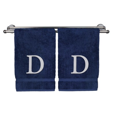 BC BARE COTTON Monogrammed Hand Towel, 100% Turkish Cotton - Set of 2 - Navy - White Block