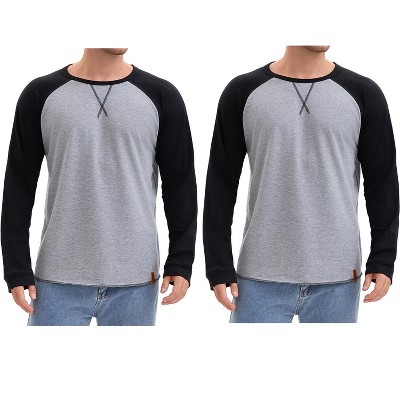 INSPIRE CHIC Men's Long Sleeve Tops Color Block Casual Raglan T-Shirt 2 Paacks