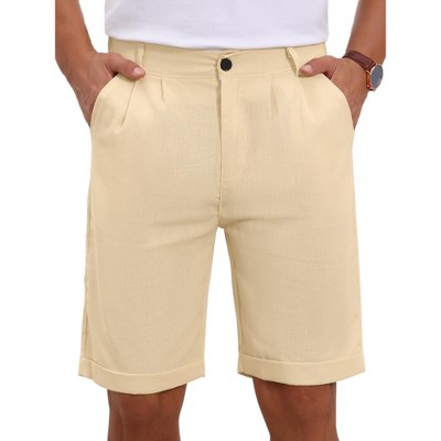 INSPIRE CHIC Men's Linen Pleated with Pockets Above Knee Casual Shorts