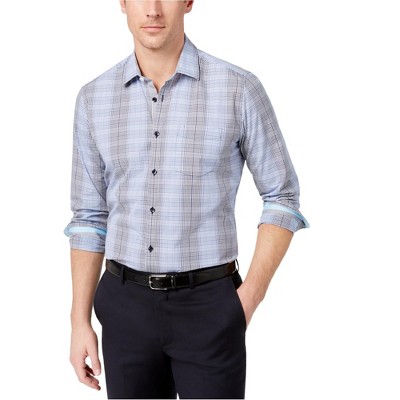 Ryan Seacrest Mens Blue Grid Button Up Shirt