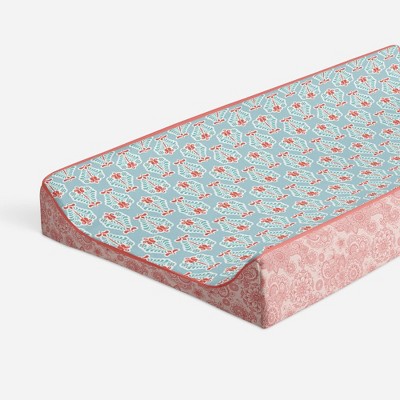 Bacati - Sophia Paisley Aqua/Coral Floret Changing Pad Cover