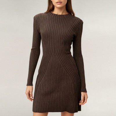Pinkblush Brown Wide Rib Maternity Mini Sweater Dress