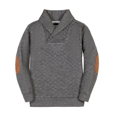 Hope & Henry Boys' Long Sleeve Quilted Shawl Collar Sweatshirt with Elbow Patches, Kids
