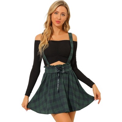 Allegra K Women's Gothic Plaid High Waist Detachable Suspender Skirts