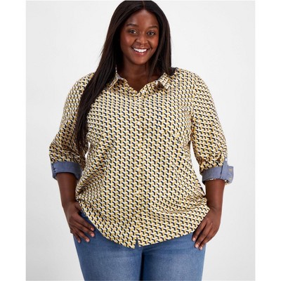 Tommy Hilfiger Womens Printed Roll Tab Button Up Shirt