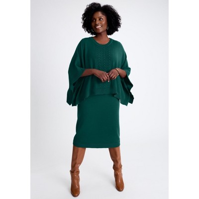 Jessica London Cable Knit Cape Sweater Dress