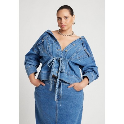 ELOQUII Denim Jacket With Cinched Waist