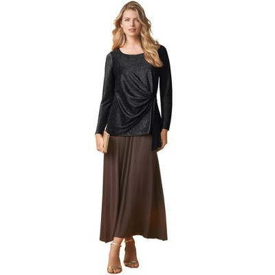 ELOQUII Ruched One Shoulder Tee With Thumbhole Sleeve