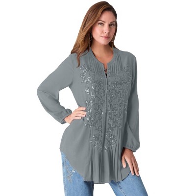 Roaman's Plus Size Crinkle Chiffon Tie Front Duster