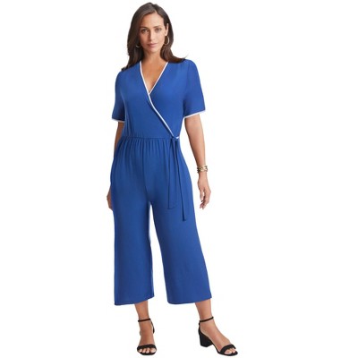 Jessica London Stretch Knit Cropped Wide Leg Jumpsuit