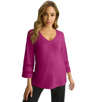Jessica London Stretch Knit Mesh Inset Sleeve Tunic