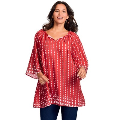 Avenue Bell Sleeve Keyhole Tie Blouse