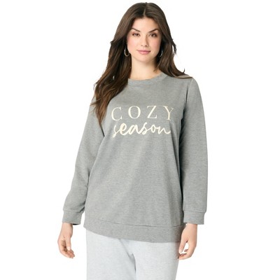 Roaman's Comfort+ Fleece Printed Sweatshirt