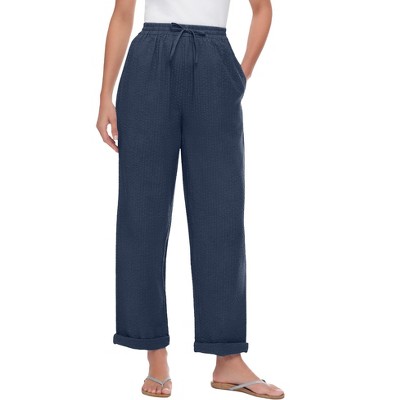 Woman Within Petite Seersucker Pull-On Elastic-Waist Pants