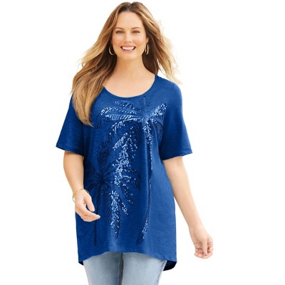 Woman Within Perfect Printed Short-Sleeve Polo Shirt