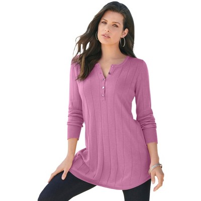 Roaman's Plus Size Drop Needle Henley Lightweight Sweater Knit